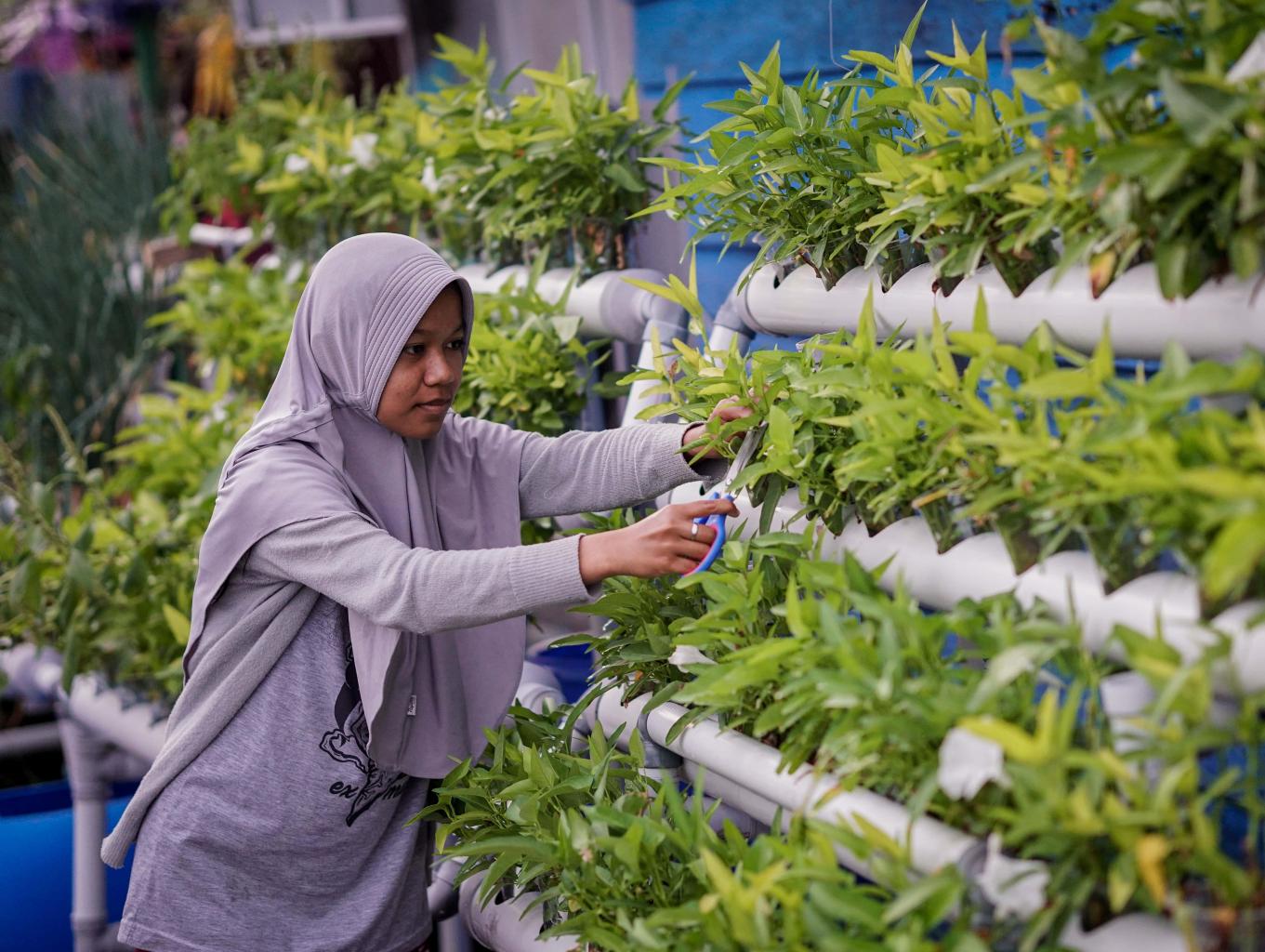 kampung yang bermukim diatas laut memiliki tanaman hidroponik yang subur dan hijau,yang bisa langsung di komsumsi
