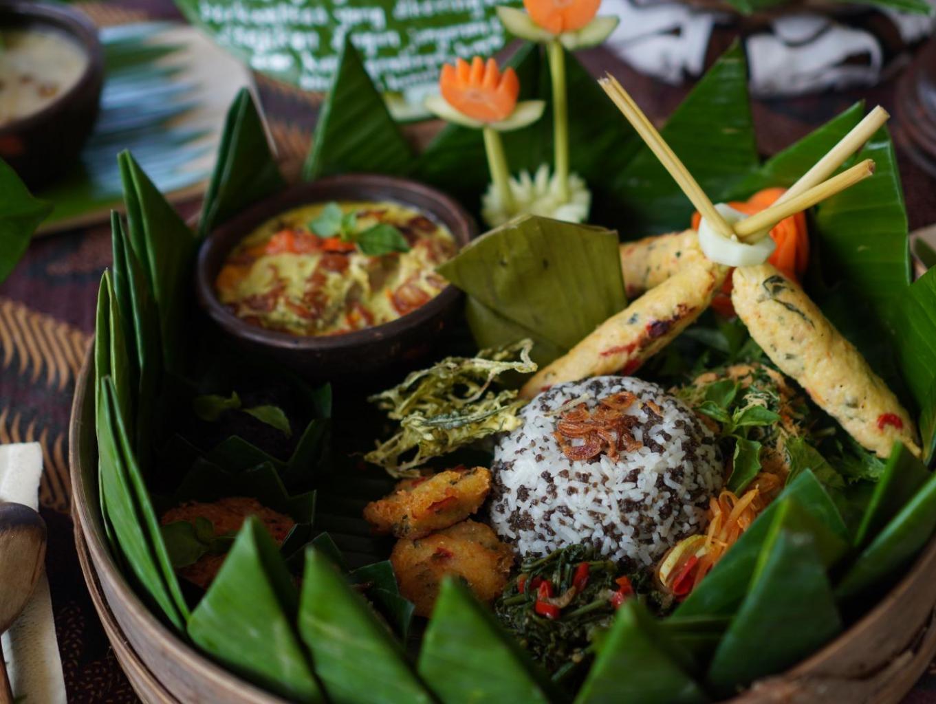 Wisatawan menikmati makanan khas desa seperti nasi thiwul, nasi putih, kare ikan lumedanh/blencing, urap, sayur pakis, sayur lompong, kothok kemangi tahu tempe, gembrot (bothok beluntas), kerupuk, kolak kaling kaling, sop durian, dan snack khas desa.