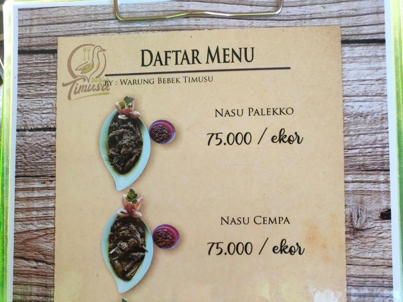 Bebek Palekko Timusu di lengkapi dengan menu Nasu Cempa,Bebek Goreng,Nasu Palekko
