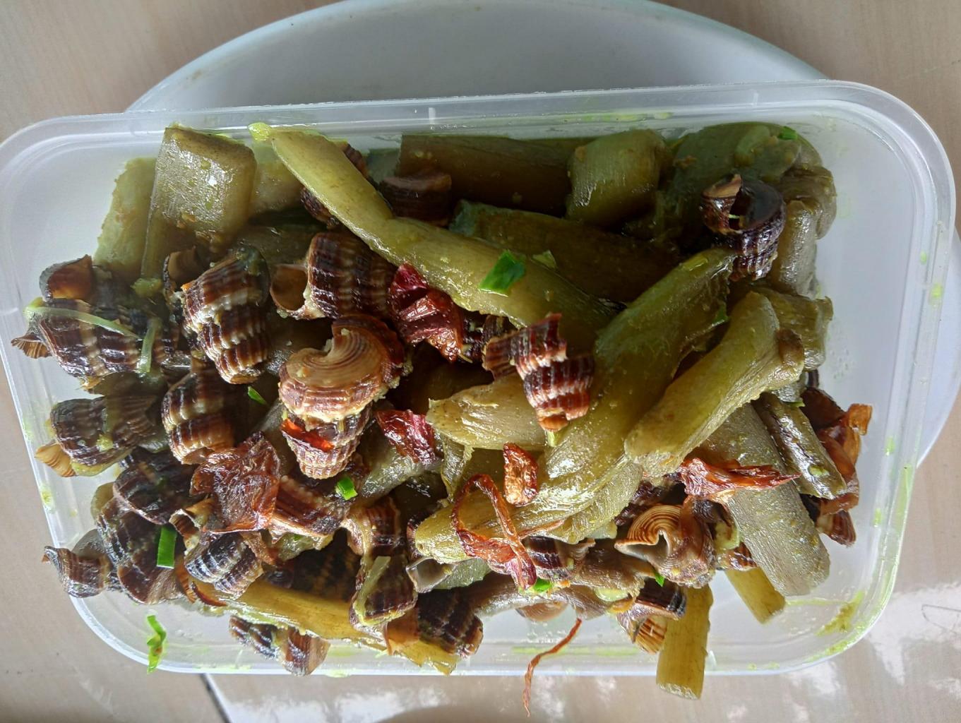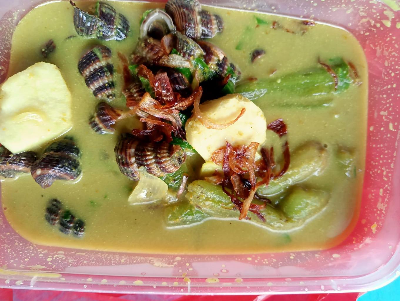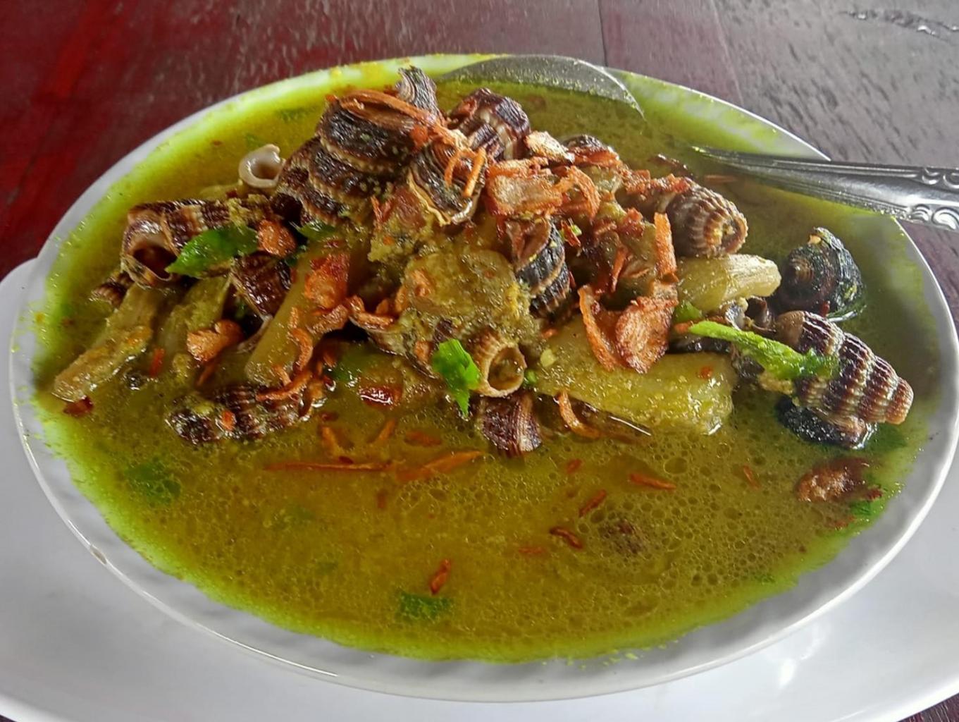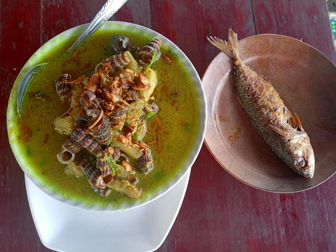 Merupakan makanan yang berbahan dasar tengkuyung (Siput Laut) dicampur dengan bumbu : Daun dan ubi keladi Santan Cabai Jahe Santan Bawang Merah + Bawang Putih Serai Minyak Makan