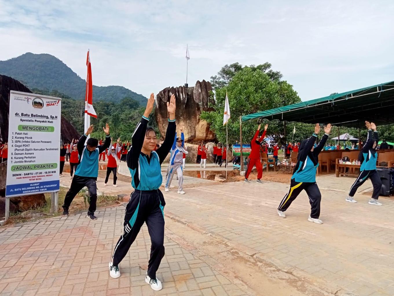 Lokasi senam bersama menjadi salah satu produk wisata yang ditawarkan di Batu Belimbing. Suasana yang asri dan masih alami menjadikan Batu Belimbing sebagai salah satu alternatif untuk lokasi kegiatan olahraga khususnya senam bersama.