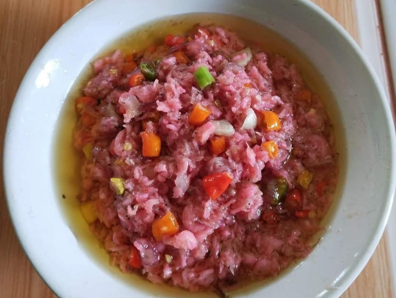 Makanan khas dari Sambas yang terbuat dari udang yang difermentasikan kemudian dicampur dengan cabe rawit, bawang merah, jeruk nipis dan minyak