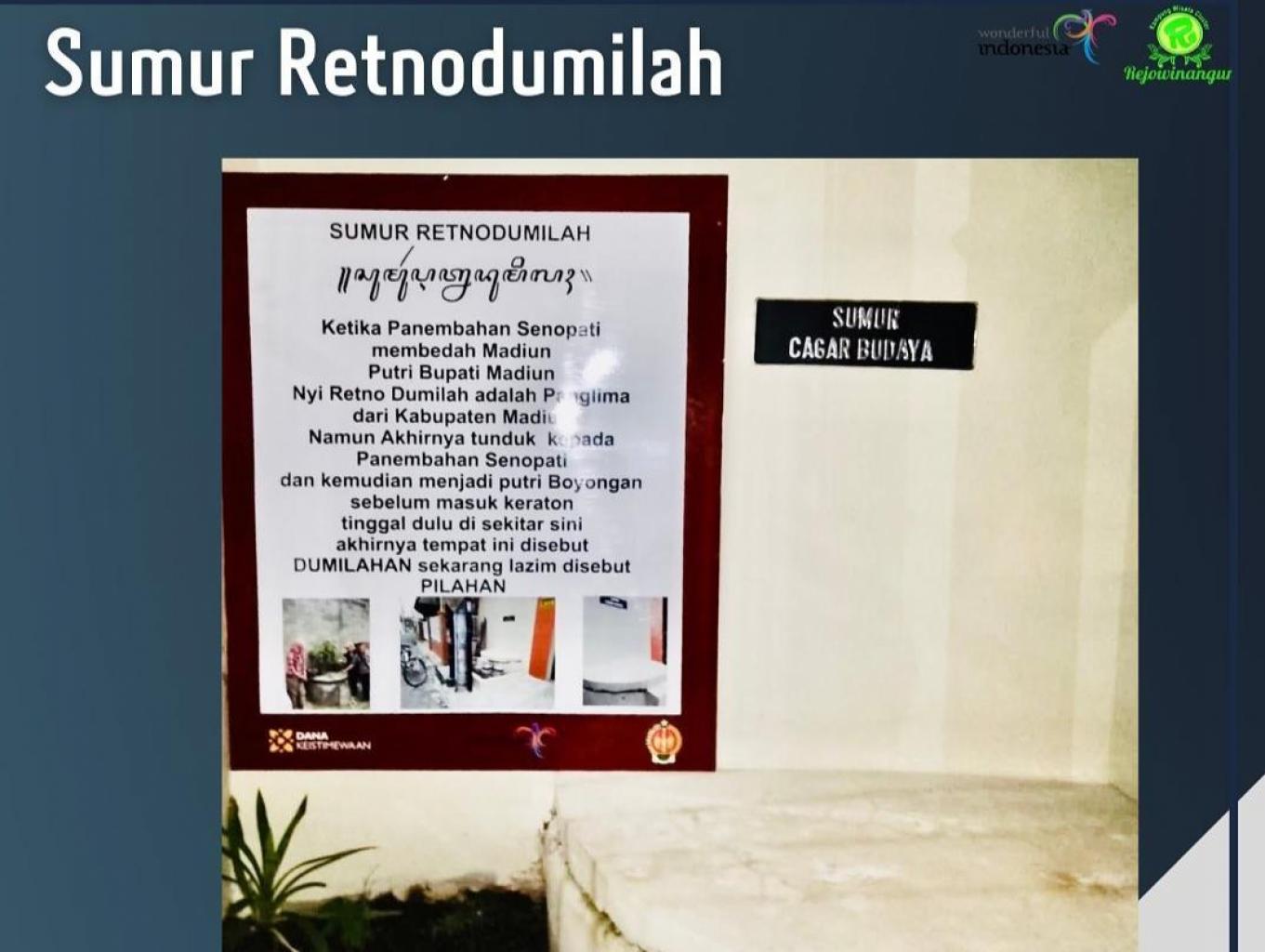 Sejarah yang terjadi dimasa lalu saat mataram dibawah pimpinan Kanjeng Panembahan senopati membedah Madiun, Putri Bupati Madiun yang bernama Raden Ayu Retnodumilah merupakan senopati dari madiun, agar tidak banyak korban rakyat akhirnya RAden ayu Retnodumilah bersedia untuk menjadi putri boyongan. sebelum masuk kraton di transit dulu di Pilahan yang berasal dari kata Dumilahan menjadi Pilahan.