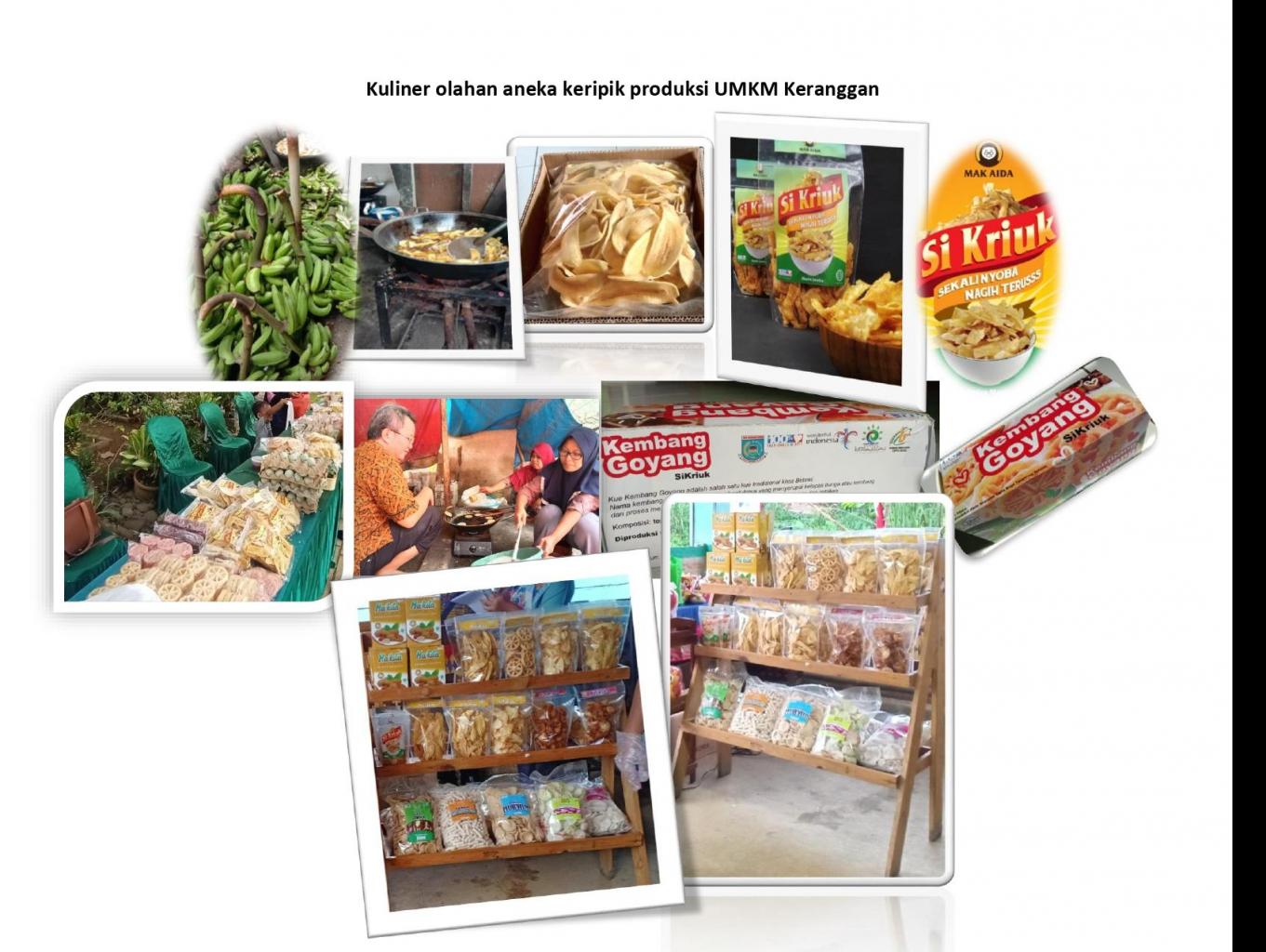 Home industry pada masyarakat Keranggan banyak memproduksi aneka keripik seperti keripik singkong, keripik pisang, kacang sangria dan lain-lain sebanyak 20 macam aneka keripik sebagai pusat oleh-oleh khas Kampung Keranggan.
